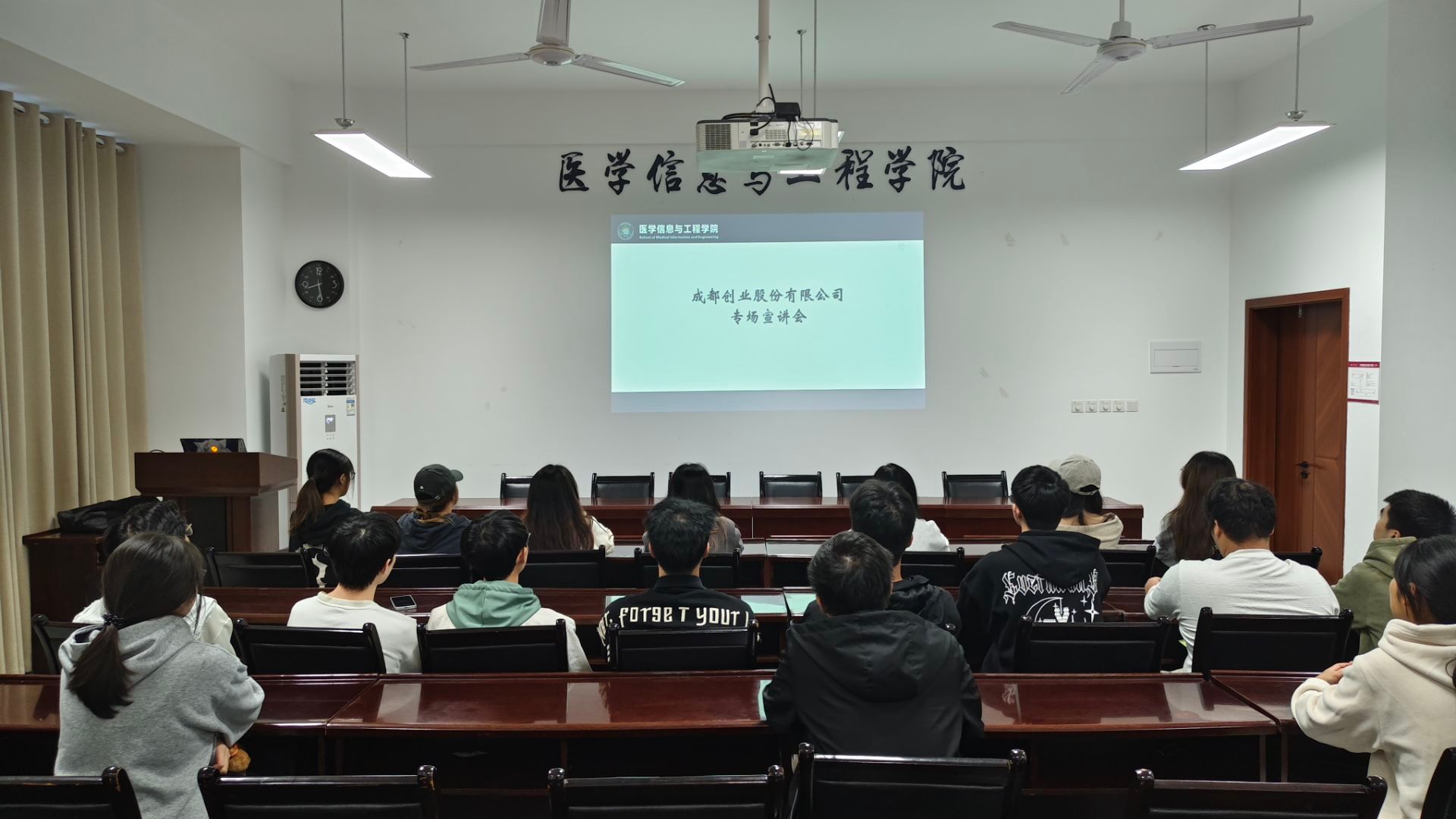为助力学生实习就业,医学信息与工程学院邀请成都创业股份有限公司到校开展企业宣讲。