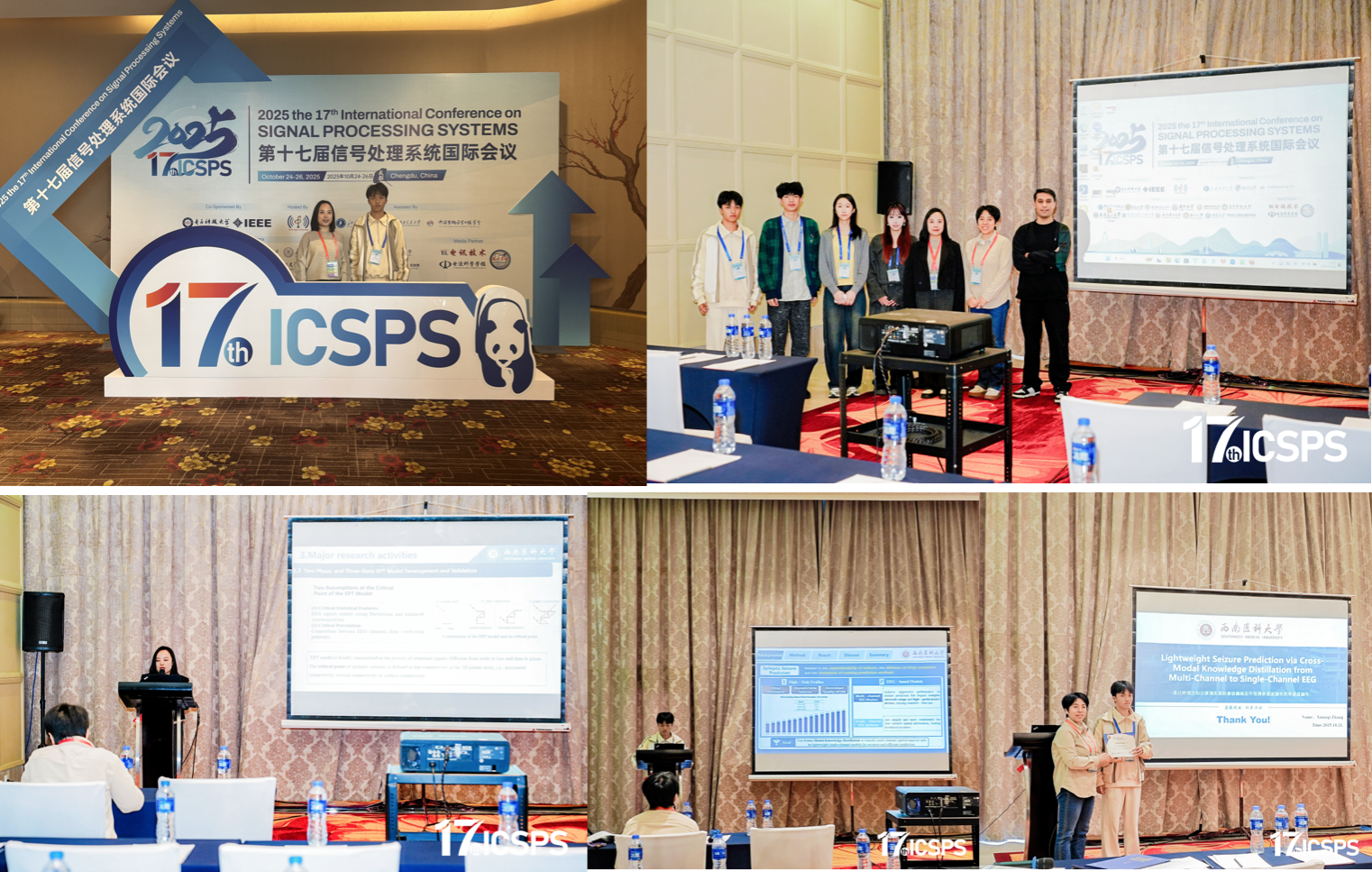 2025年10月24日至26日,西南医科大学医学信息与工程学院钟丽莎副教授与2023级智能医学工程专业张暄奇同学应邀参加在成都举行的2025 the 17th International Conference on Signal Processing Systems(ICSPS)第十七届信号处理系统国际会议国际学术会议。会上,钟丽莎博士作题为《Epileptic EEG Spatiotemporal Dynamics and Seizure Prediction Based on Critical Point Detection in Phase Transition》的特邀报告,系统介绍其团队在癫痫脑电时空动力学分析与癫痫发作早期预测方面的研究成果。