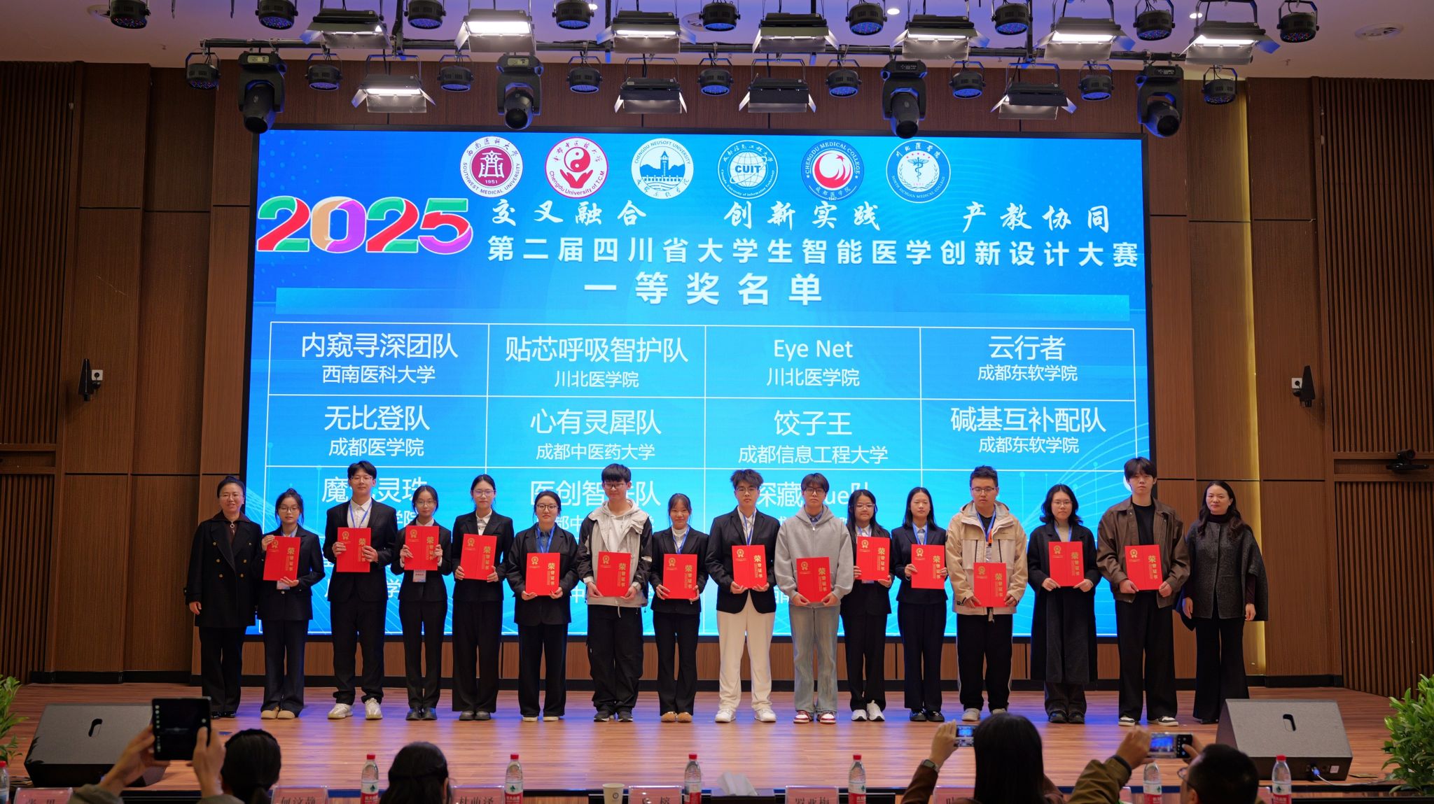 2025年11月15日至16日,第二届四川省大学生智能医学创新设计大赛在川北医学院隆重举行。本次大赛由川北医学院与西南医科大学共同主办,吸引了来自川北医学院、西南医科大学、成都中医药大学、成都医学院、成都信息工程大学及成都东软学院等6所高校的37支团队同台竞技。经过激烈角逐,我校最终荣获一等奖2项、二等奖4项的优异成绩,实现了我校在该项赛事中一等奖“零的突破”。