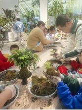 活动的第二站,是动手又动脑的苔藓球制作环节。无论是大人还是孩子,都全心投入,用湿润的泥土和翠绿的苔藓,小心翼翼地包裹住植物的根茎,创造出一个又一个独一无二的“绿色星球”。这不仅仅是一个盆栽,更是一份亲手培育的秋日希望,承载着收获的喜悦。