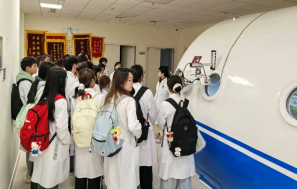 走进医学装备部耗材库房,信息化耗材管理系统与严谨的工作流程让同学们直观感受到医疗物资信息化、精细化管理的重要性。这种科学的管理模式不仅提高了医疗物资的使用效率,还确保了医疗工作的顺利进行。在高压氧舱区域,老师深入讲解了氧舱在缺血缺氧性疾病治疗中的独特机制。同学们了解到,高压氧治疗作为一种辅助治疗手段,能够为患者提供特殊的治疗环境,有效改善患者的病情,拓宽了对多元化治疗手段的认知视野。