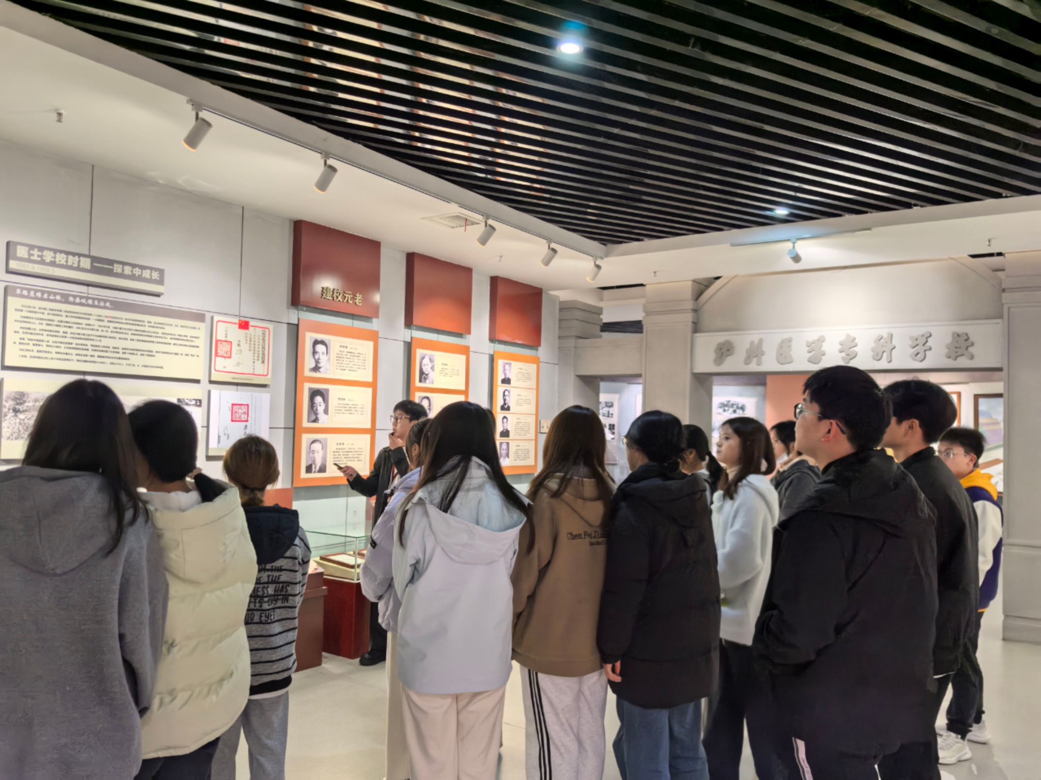 活动在讲解员引导下有序展开。学生们通过聆听建校初心、发展历程的生动讲述,观看承载岁月印记的老照片与实物展品,深入了解历代师生在医学领域的坚守贡献及红色基因在校园中的传承脉络。讲解员娓娓道来的奋斗故事与精神内核,让"厚德精业、仁爱济世"的校训精神变得可感可触,使学生们真切体会到一代代师生的责任担当。参观结束后,支部组织全体学生提交心得体会,并发放定制纪念奖品以资鼓励。